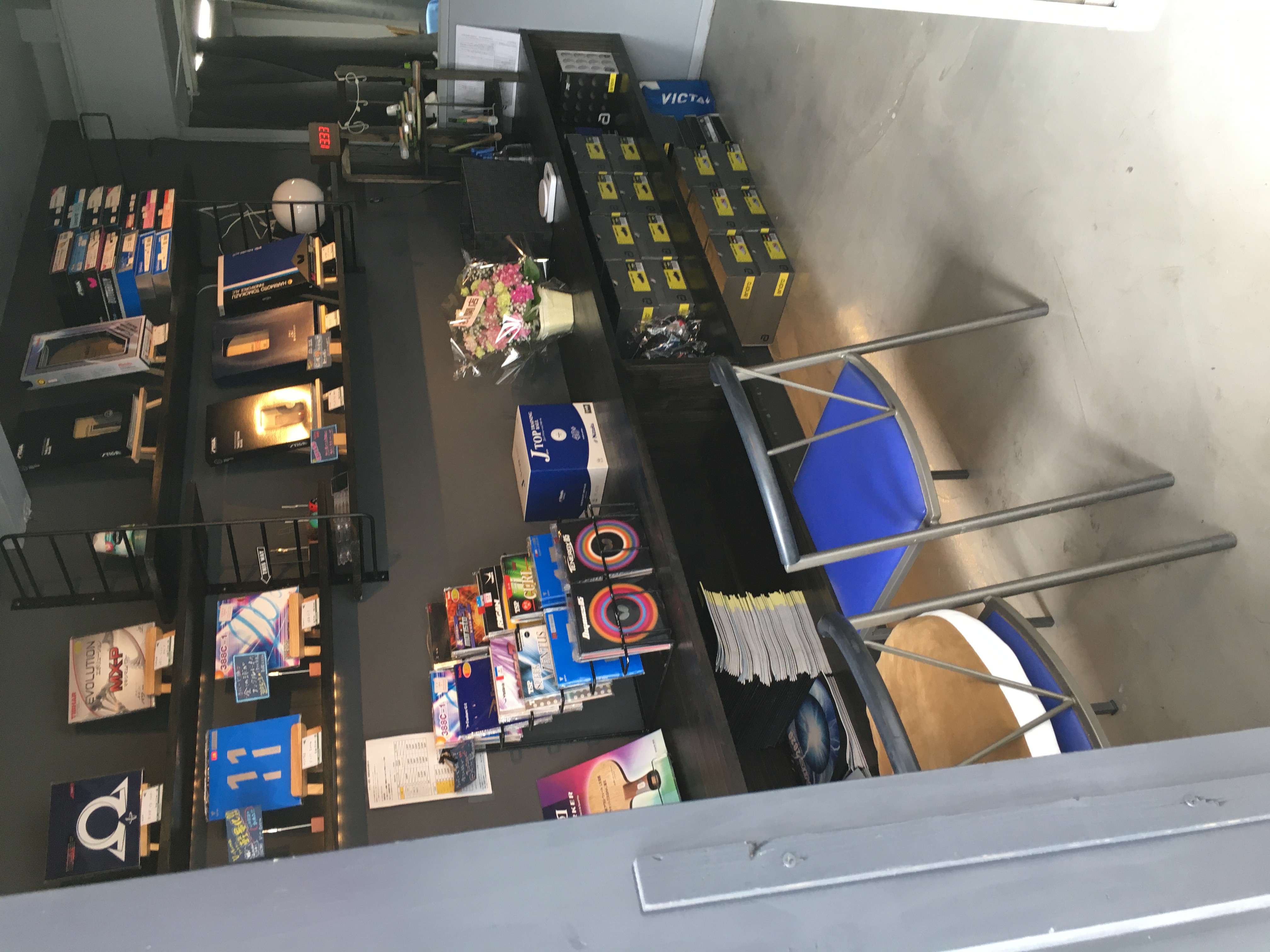 2階メインコートは200㎡の広さがあり、天井も高い開放感ある卓球場です。